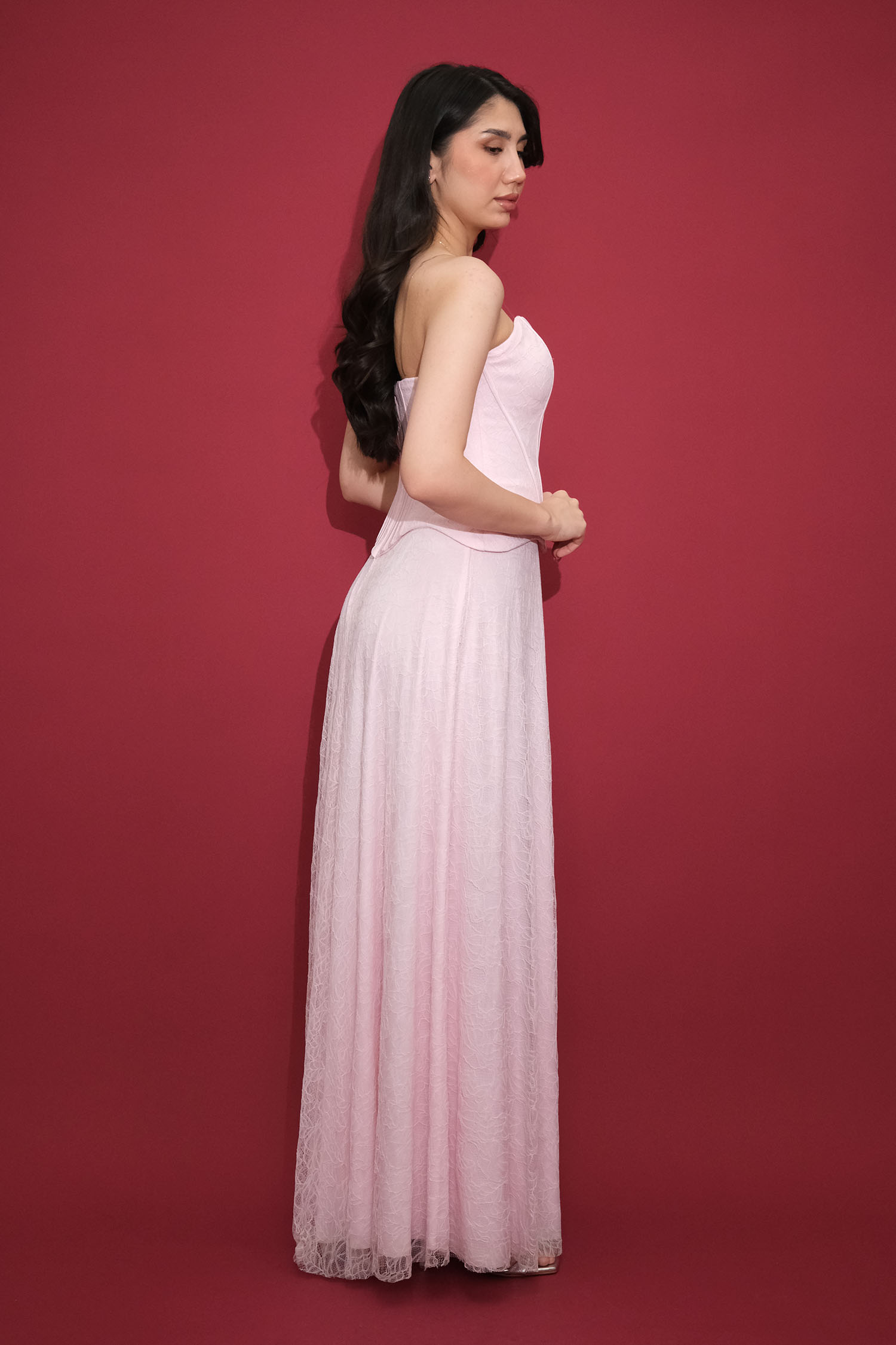 Straplez kesimi ve korse formundaki üst yapısıyla vücut hatlarını belirginleştiren bu uzun abiye elbise, güçlü ve feminen bir duruş sunar. Üst kısmındaki dikey balen detayları sayesinde toparlayıcı ve şekillendirici bir etki yaratırken, akıcı dokulu eteği ve derin yırtmaç detayı ile hareketli ve iddialı bir görünüm kazandırır. Davet, nişan ve özel gecelerde şıklığıyla öne çıkmak isteyenler için ideal bir tercihtir.